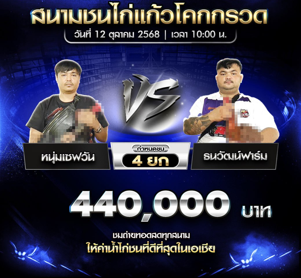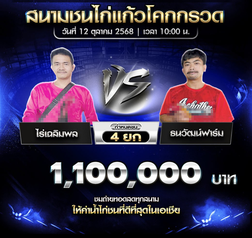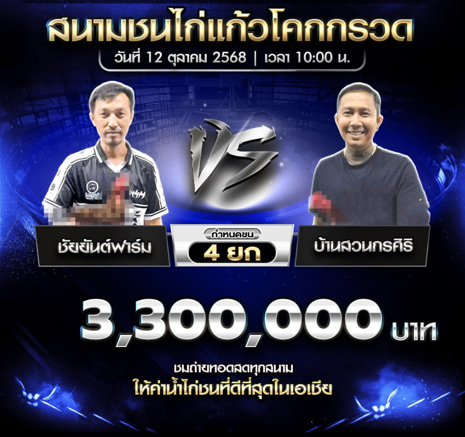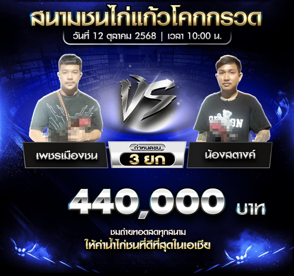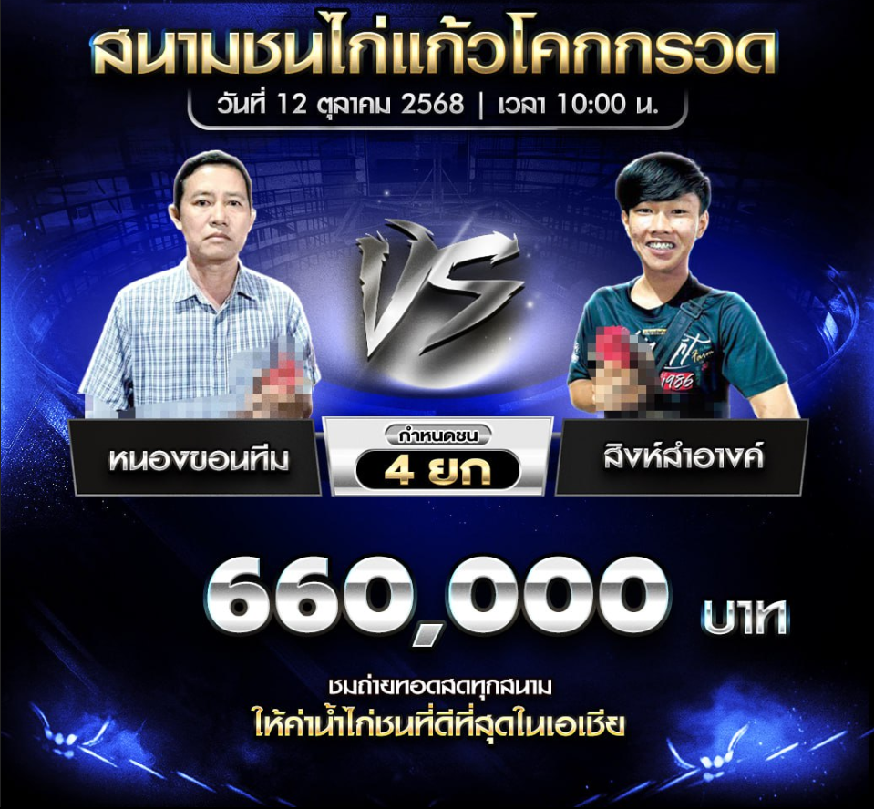 โปรแกรมไก่ชน วันที่ 12 ตุลาคม 2025 สนามชนไก่แก้วโคกกรวด